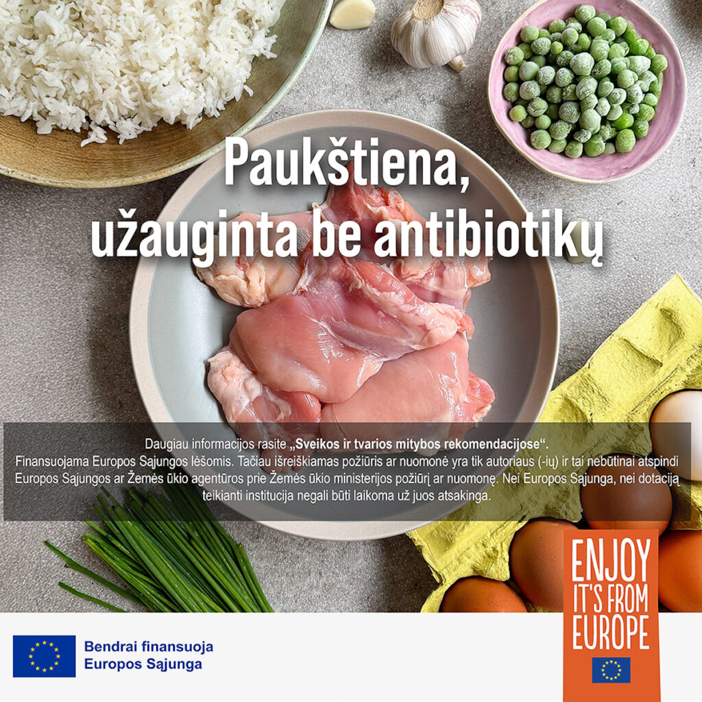 Savo šeimos stalui visada stengiuosi rinktis paukštieną, užaugintą be antibiotikų. Tai reiškia, kad paukščiai auginami tinkamomis sąlygomis – visą auginimo laikotarpį jie sveiki, jų imunitetas stiprus, todėl gydymo antibiotikais nereikia. Modernūs paukštynai Europoje tai pasiekia taikydami griežtą biosaugą, naudodami kokybišką lesalą, užtikrindami aukštus gyvūnų gerovės standartus ir nuolatinę sveikatos priežiūrą.