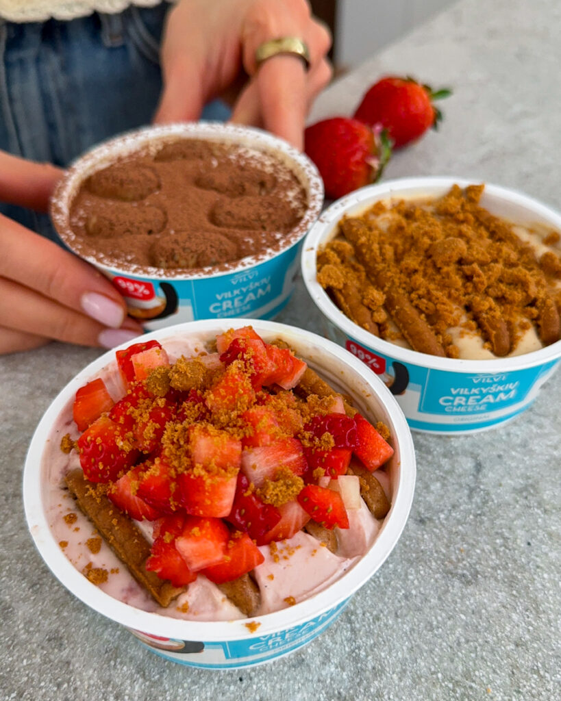 - VILVI cream cheese original sumaišome su jogurtu ir Biscoff kremu.