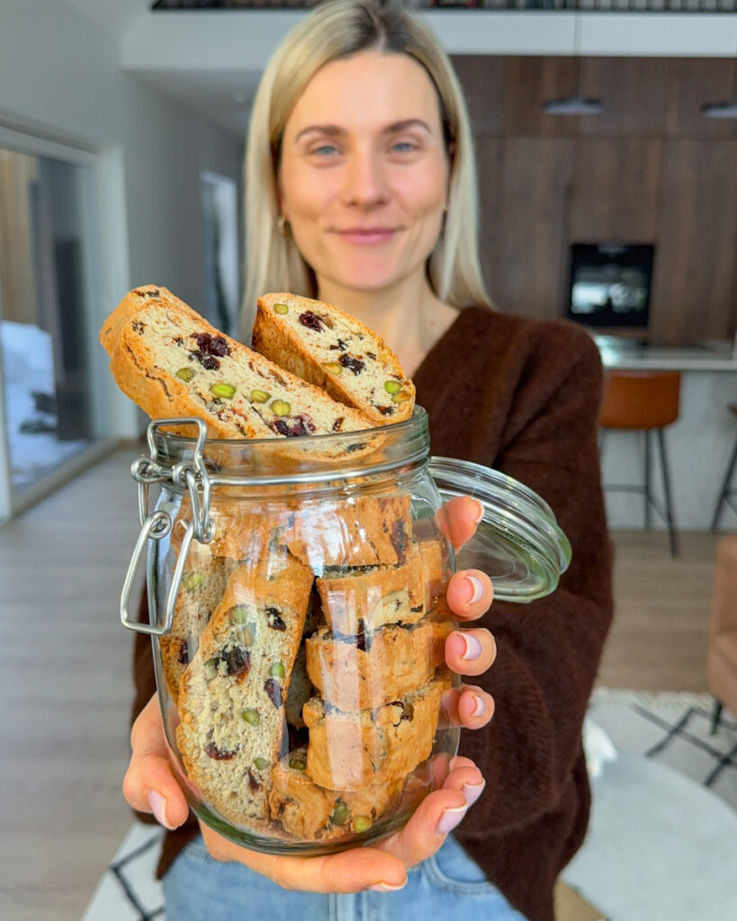Biscotti – italų klasika, savo tekstūra šiek tiek panaši į mums visiems gerai pažįstamus džiūvesėlius, nes trašku ir trapu, tik, žinoma, skonis ženkliai turtingesnis ir sodresnis. Labai mėgstu šiuos sausainius, nes paruošiami jie itin greitai, lengvai ir iš kasdienių produktų. Iškepa pilna skarda skaniausių sausainių, kurie sandariame inde sėkmingai laikosi 2-3 savaites (sėkmės išlaikyti bent savaitę nesuvalgius 🙂 O jei norit kaip italai, tai gardžiuodamiesi nepamirškite pamirkyti biskočių į kavą.